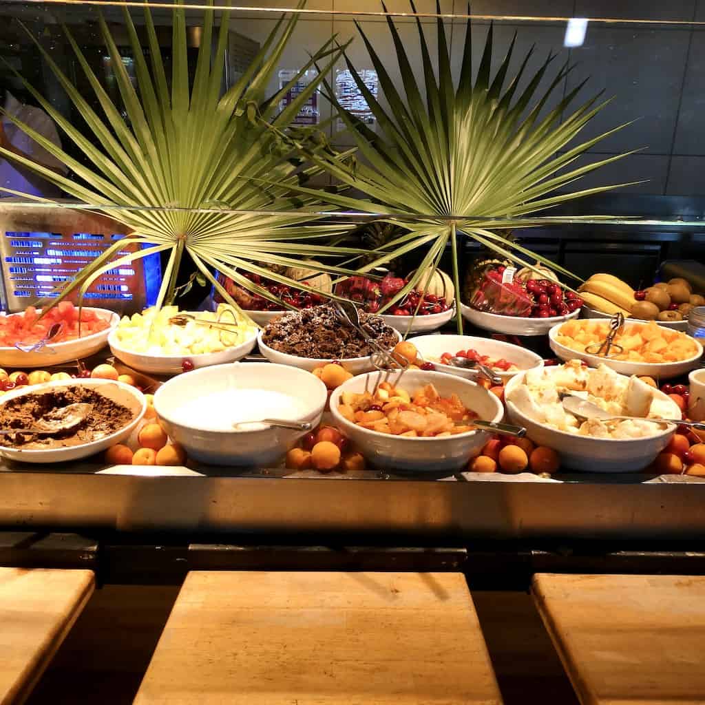 Auch im Restaurant sieht alles sehr verlockend aus. Aber wir bleiben hart . . .