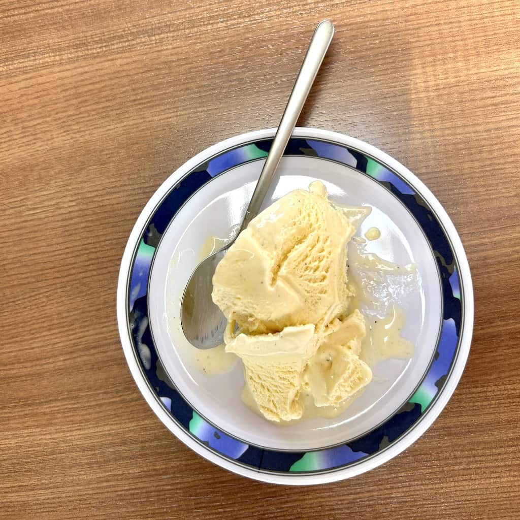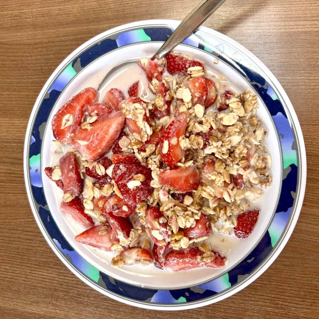 . . . denn im Mobi wartet feines Müesli mit frischen Erdbeeren und zum Dessert Kaffee und leckeres Eis auf uns.