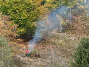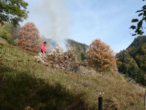 Weit oben sahen wir Rauch. Als wir näherkommen, sehen wir Arbeiter, die Buschwerk roden und verbrennen, damit das wenige Weideland nicht verwaldet.