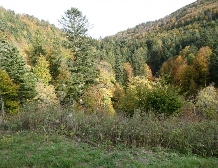In dieser Höhenlage gibt es im Schwarzwald aber noch vorwiegend Laubbäume und deren Laub ist nicht minder rutschig.