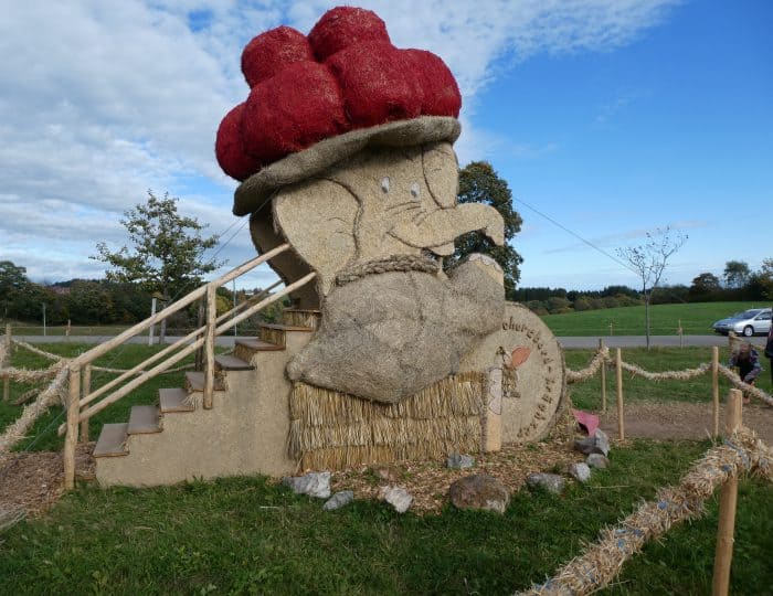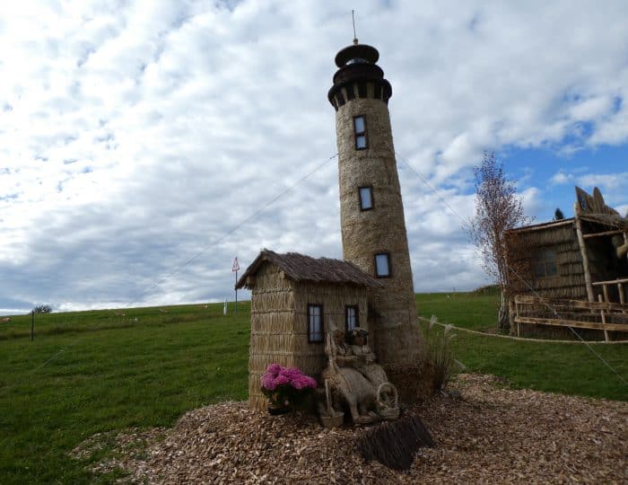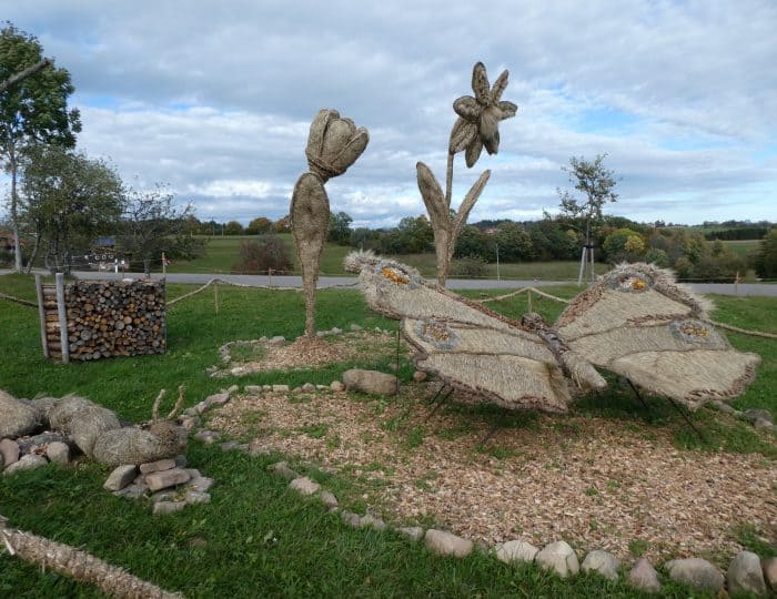 Es ist wirklich erstaunlich, was man aus Stroh alles formen kann. Der angrenzende Hofladen schien uns aber reichlich überteuert. Hier kommen ganze Busladungen mit kaufkräftigen grauhaarigen Schweizern. Die haben eine andere Preis-Optik.