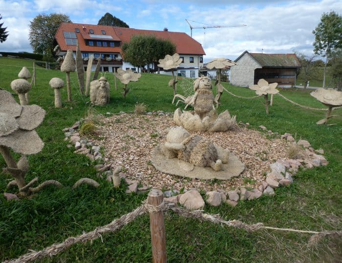 In Höchenschwand stoppen wir bei einem Feld voller Strohskulpturen. Hier werden jedes Jahr die originellsten Kunstwerke prämiert.