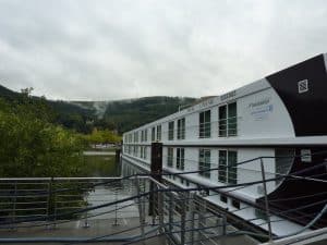 Hier liegt ein Hotelschiff einer schweizerischen Gesellschaft.