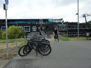 Die Mannschaft, auch in Schwarz, schafft etwa hundert schwarze Fahrräder an Land, mit denen die Gäste später mainaufwärts radeln.