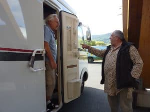 Nach einer Kaffee- und Plauderstunde bei uns im Mobi verabschieden wir uns von „Guru Gerhard“.