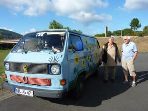 Sein VW-Bus ist 32 Jahr alt und ist gerade erst wieder durch den TÜV gekommen. Nach Abgaswerten wird bei Oldtimern nicht mehr gefragt.