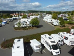 Wir bleiben über Nacht auf dem Hymer-World-Stellplatz. Die meisten der 90 Plätze sind heute belegt.
