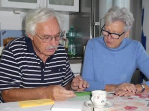 Gleich um die Ecke halten wir kurz bei Marita und Franz wegen ihrer E-Mail-Adresse. Marita ist schon wieder beim Kuchenbacken, denn morgen hat sie Geburtstag.
