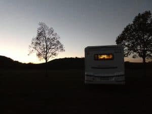 Es ist schon fast dunkel, als wir auf einem Camperparkplatz bei Tripsdrill ankommen.