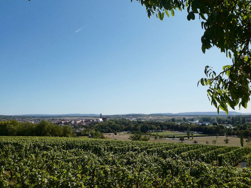 Von hier oben hat man eine schöne Aussicht auf Volkach und die Weingegend.