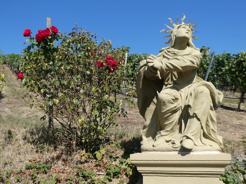 Die spätgotische Kirche steht mitten im Weinanbaugebiet.