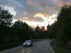 Auf der Weiterfahrt wird es rasch dunkel.