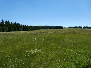 Auf der Passhöhe auf 1050 m.ü.M., – die Grenze zu Deutschland ist in Sichtweite-, gibt es ein Skigebiet. Es sieht ähnlich aus wie auf dem Feldberg im Schwarzwald.