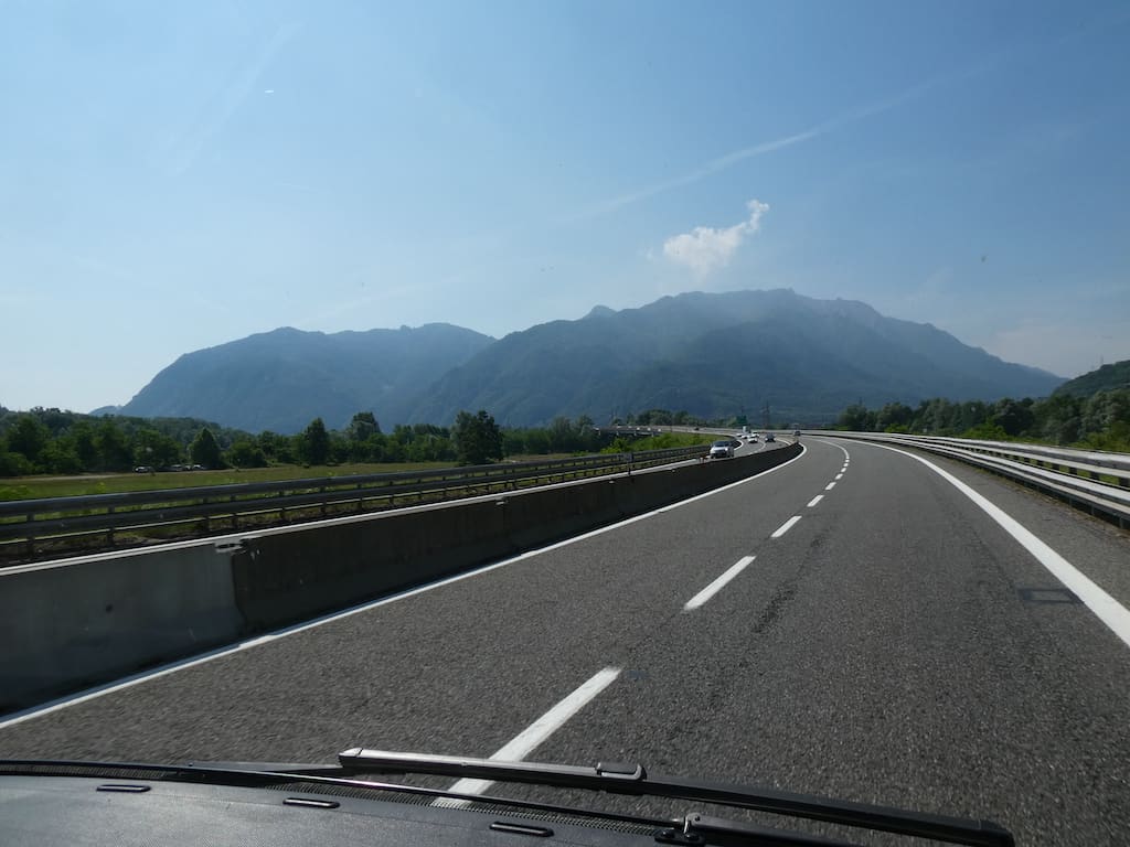 Bevor es weiter geht, füllen wir hier noch Frischwasser nach und leeren den Grauwasser- und den Fäkalientank. Nähe Domodossola kaufen wir noch ein. Dann geht es auf die Autobahn.