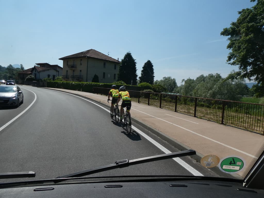 Die spätere Landstrasse in Richtung Verbania ist auch nicht viel besser. Es sind viele Velofahrer unterwegs. Auch ganz sportliche, denen wir kaum nachkommen.