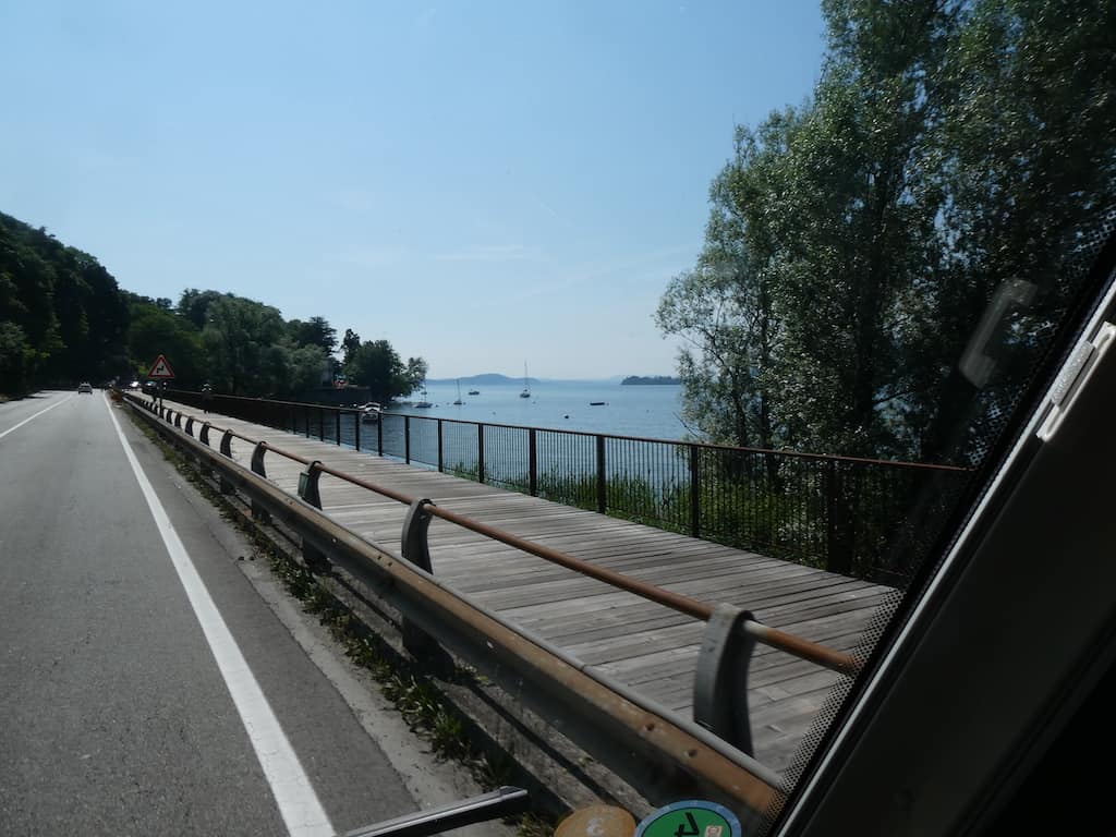 Die Uferstrasse in Richtung Luino ist auch recht eng. Aber es gibt genügend Ausbuchtungen, um den schnelleren Verkehr hinter uns vorbeizulassen.