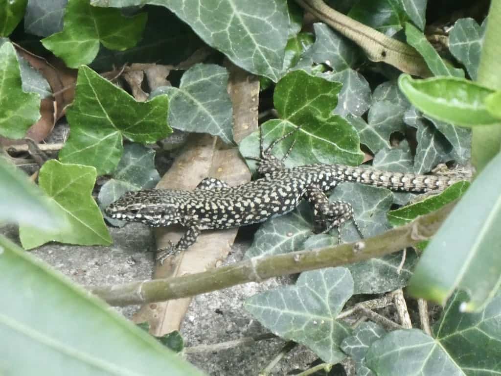 Wir aber suchen den Schatten. Nur hier halten wir die Hitze einigermassen aus. Anders die Eidechse, die uns besucht. Die fühlt sich sicher sehr wohl.