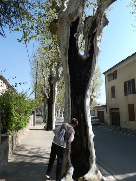 Interessant finden wir, dass diese und weitere ausgehöhlte Platanen immer noch leben.