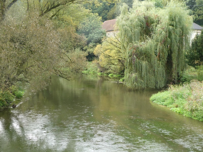Die geringe Fliesgeschwindigkeit macht die Altmühl so beliebt bei Kanufahrern. Bei diesem Wetter ist aber niemand unterwegs.