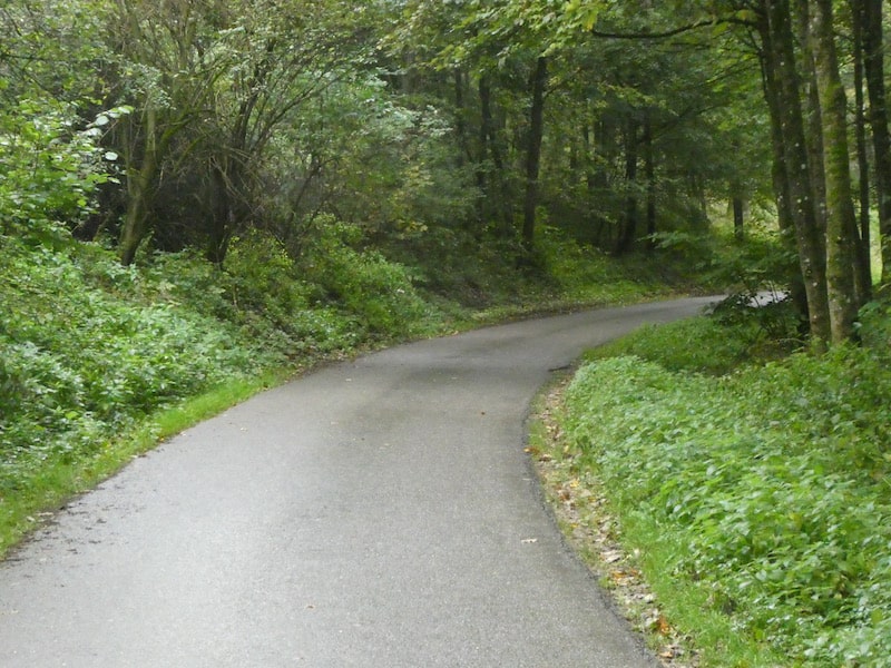 Auf einer Umleitung kommen wir über schmalste Strässchen wieder zurück ins Tal.