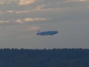 Am Horizont zieht immer wieder der Zeppelin vorbei, der von Friedrichshafen aus Rundflüge veranstaltet.