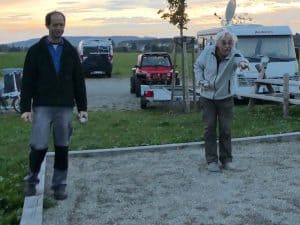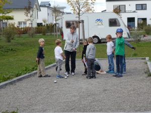 Wir spielen Boule und haben bald eine Horde Kinder aus der Nachbarschaft um uns. Alle wollen sie unsere Magnete ausprobieren, mit denen wir die Kugeln vom Boden hochheben.