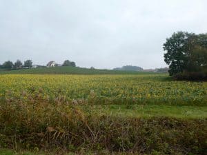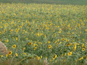 Wir verlassen Horgenzell Richtung Salem und kommen an grossen Sonnenblumenfeldern vorbei, – leider ohne Sonne.