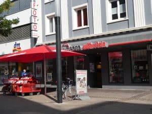 Dort will Michael in diesem Fotogeschäft ein kleines Dankeschön für den grossartigen Service im Zusammenhang mit der Reparatur der Kamera vorbeibringen. Wir wurden vor einem Jahr Kunde, weil hier das neu auf den Markt gekommene Modell schon erhältlich war.