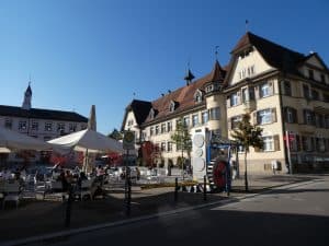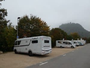 Den vorletzten Tag unserer Tour wollen wir gerne  noch am Rhein verbringen. Leider sind die (wenigen) 6 Stellplätze in Laufenburg schon alle belegt. Auch der grosse Stellplatz in Bad Säckingen für 60 Reisemobile ist total voll.