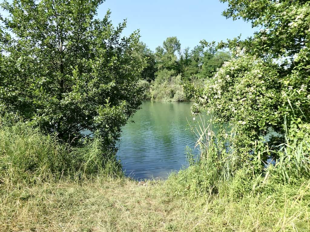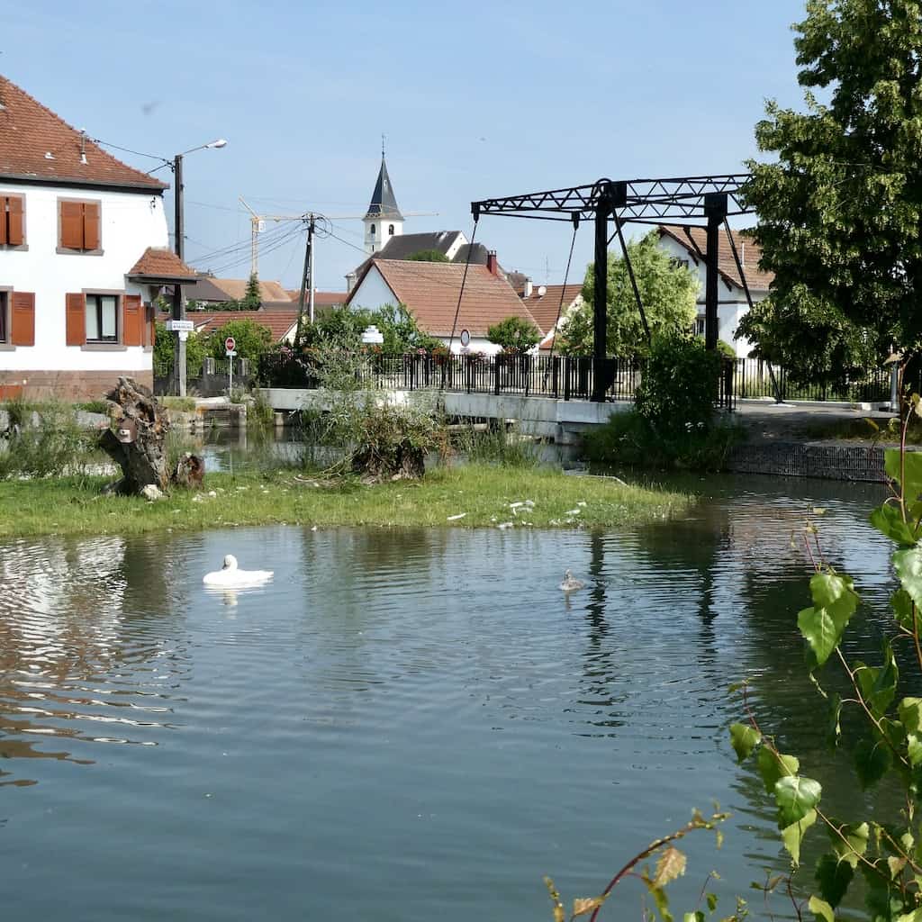 Der Platz in der Nähe von Petit-Landau liegt wohl direkt am Rhein-Rhone Kanal, aber man sieht nicht sehr viel davon. Auch die Umgebung finden wir wenig ansprechend.