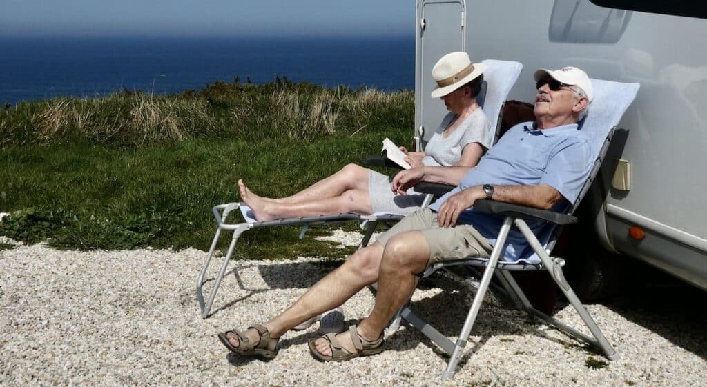 Dann geniessen wir das schöne und warme Wetter vor dem Mobi.