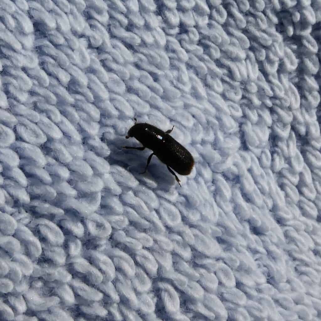 Der Genuss wird jedoch durch diese lästigen, etwa 5 mm kleinen schwarzen Käfer getrübt. Zu Hunderten schwirren sie umher und plagen uns, wenn sie so anhänglich auf uns landen. Insekten fühlen sich bei diesem warmen Wetter auch wohler.