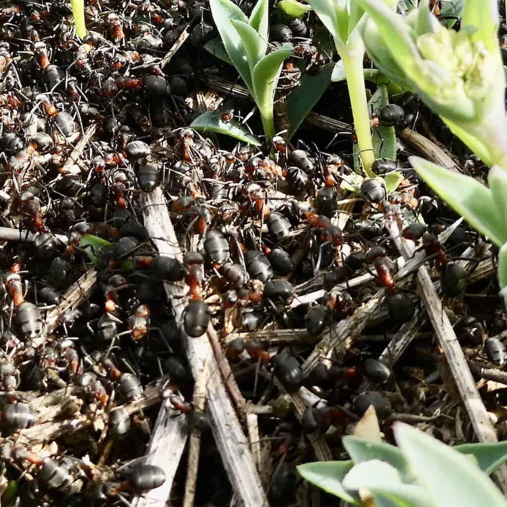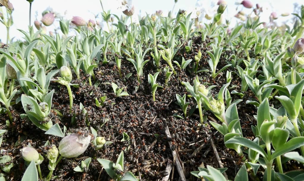 Bei diesem Wetter sind auch die Ameisen wieder aktiv. Einen Ameisenbau im Klippenleimkraut haben wir auch noch nie gesehen.