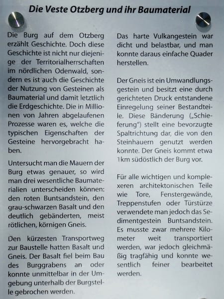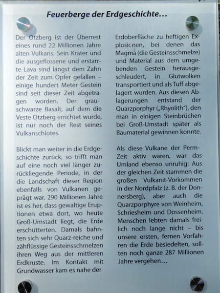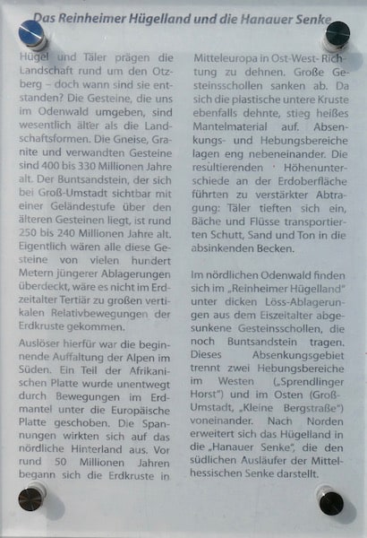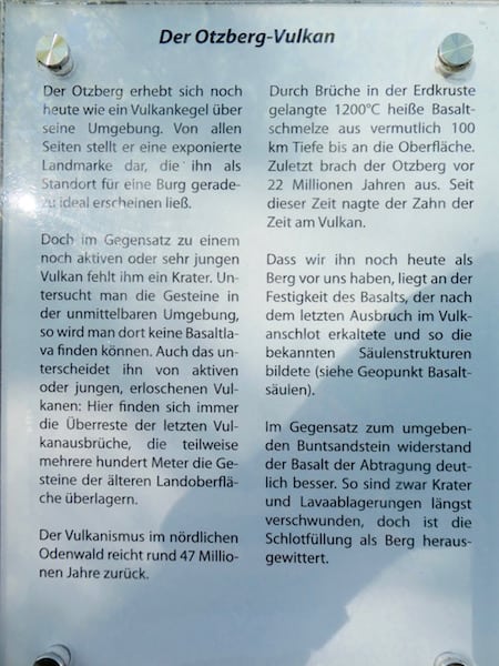 Der Otzberg ist ein erloschener Vulkan und überragt die Umgebung um etwa 200 Meter. Der gleichnamige Ort hat ca. 6500 Einwohner.