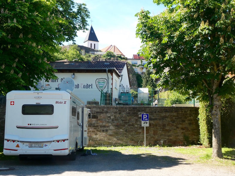Die Gemeinde stellt zwei Stellplätze für Camper zur Verfügung, sehr zentral im Ort gelegen. Wir sind heute sogar alleine.