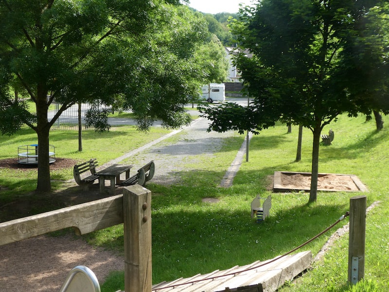 Der Stellplatz liegt auch wirklich sehr idyllisch und ruhig. Zwei Hymermobile, Vater und Sohn, stehen auch schon hier.