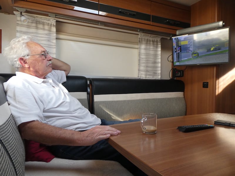 Michael schaut heute nach dem Frühstück noch die letzten Runden des F1-Rennens von Shanghai im Fernseher an.