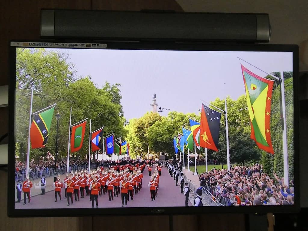 Und während es bei uns fest regnet, schauen wir uns den Trauerzug in London an, wo heute sogar die Sonne scheint.