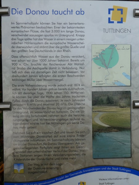 Auf dem Weg dahin bietet es sich natürlich an, noch einmal die Donauversickerung zu besuchen. Wir waren dort am Anfang unserer Reise am 20. Mai und da war der Wasserstand zu hoch.