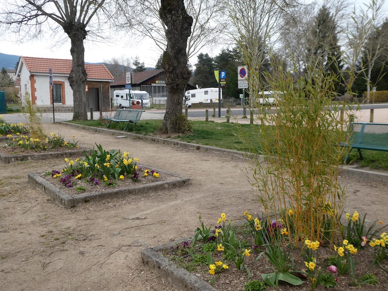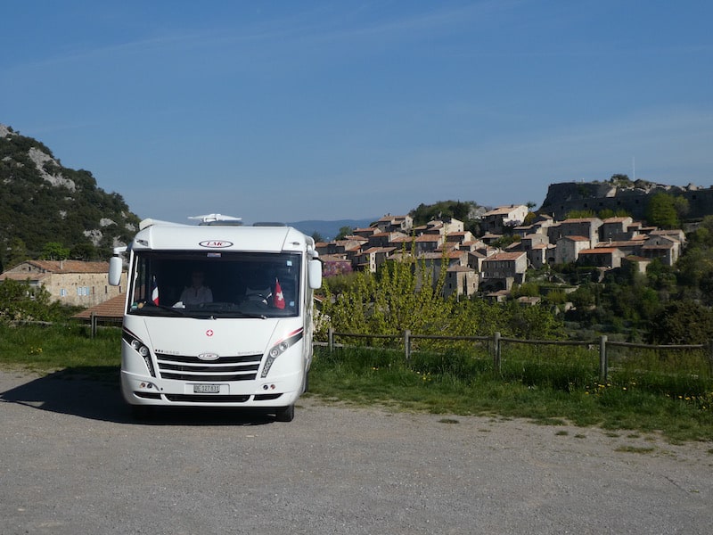 Die „grünen“ Strassen führten uns über mehrere Pässe des Nationalparks „Monts d’Ardèche“ und über die Höhen der „Haute-Loire“ und der „Auvergne“. So schmale Strassen, so viele Pässe und diese Höhen hatten wir nicht erwartet. Der höchste war der „Col du Pendu“ mit 1435 m.ü.M. Zum Glück war sehr wenig Verkehr, denn das Kreuzen mit dem Gegenverkehr wäre hier fast unmöglich. Seitlich der Strasse in Schattenlagen lag auch noch Schnee. Später kommen wir auf die Strasse N102. Auch die verläuft noch lange auf einer Hochebene von 1200 m.ü.M.