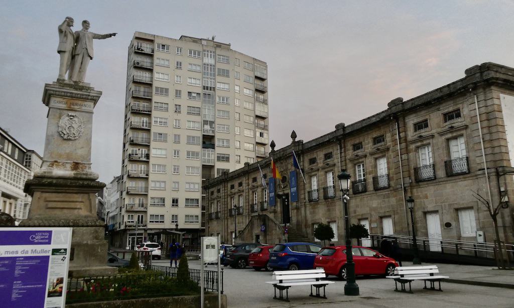 Auf einem ersten Platz steht der Torre do Reloxo aus dem 15. Jh. und das Concello, das Gebäude der Stadtverwaltung.