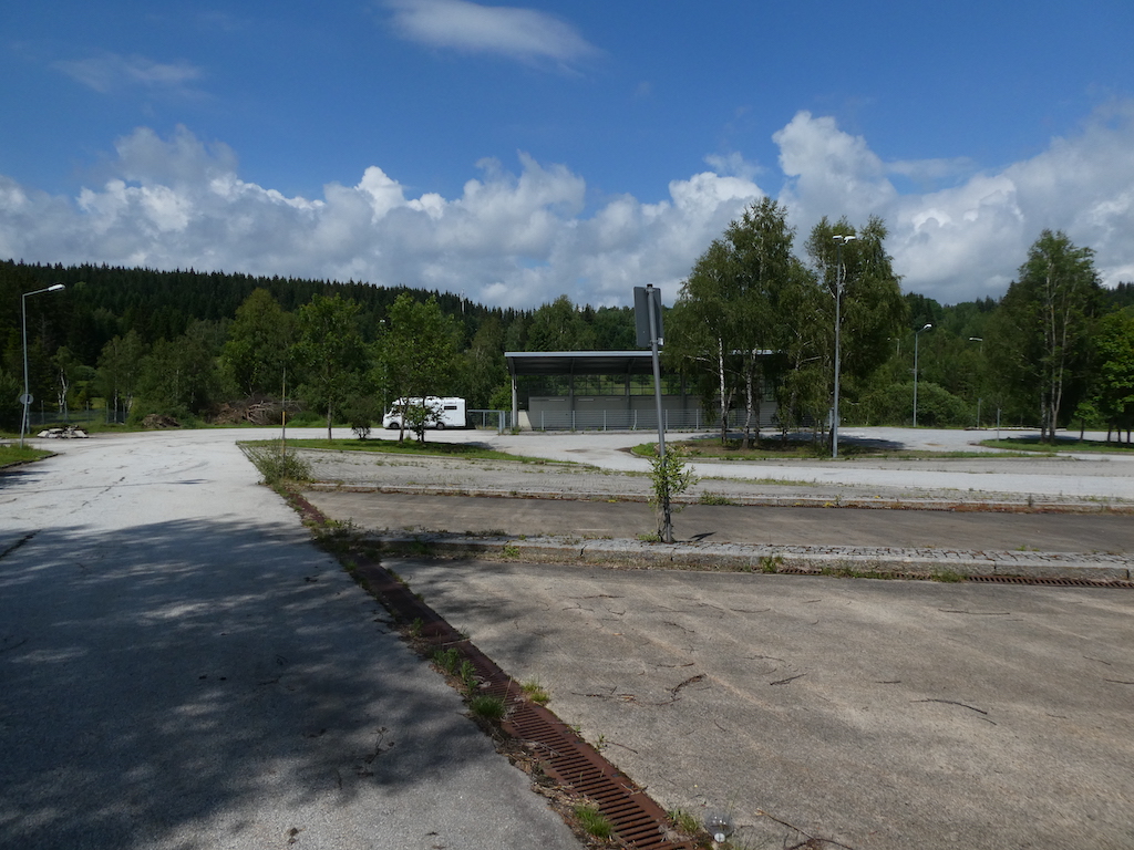 Dass wir hier eigentlich nicht stehen dürfen, weil inzwischen Privatgelände, erfahren wir erst bei der Abfahrt. Dabei ist das ein so schön ebener und ruhiger Platz mit einer herrlichen Aussicht.