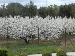 Hier ist eine kleine Plantage mit Kirschbäumen in voller Blüte. Diese Pracht war uns ein Fotohalt wert. Es wird am Nachmittag auch bis 17° warm.