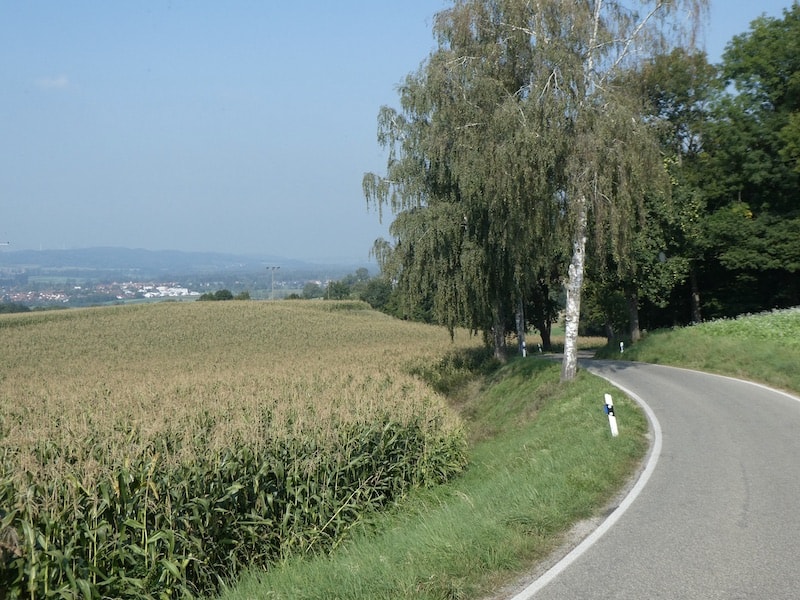 Donnerstag: Wieder ein fantastischer Herbsttag. Wir verlassen Wolfegg und fahren querfeldein westlich.