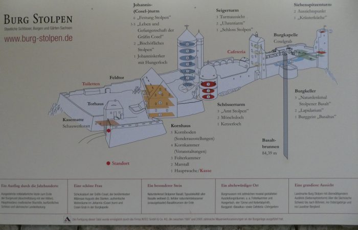 Zuerst hat Michael unseren gestrigen Blogbeitrag im WLAN-Netz des Hotels nachgetragen. Dann wollten wir doch noch vor der Weiterfahrt die Burg von Stolpen ansehen, unter der wir in Sichtweite standen.