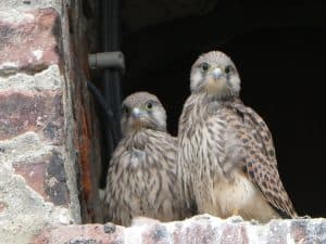 Dann entdeckten wir noch in einem der Turmfenster zwei Turmfalken. Neugierig schauten sie den Besuchern nach.
