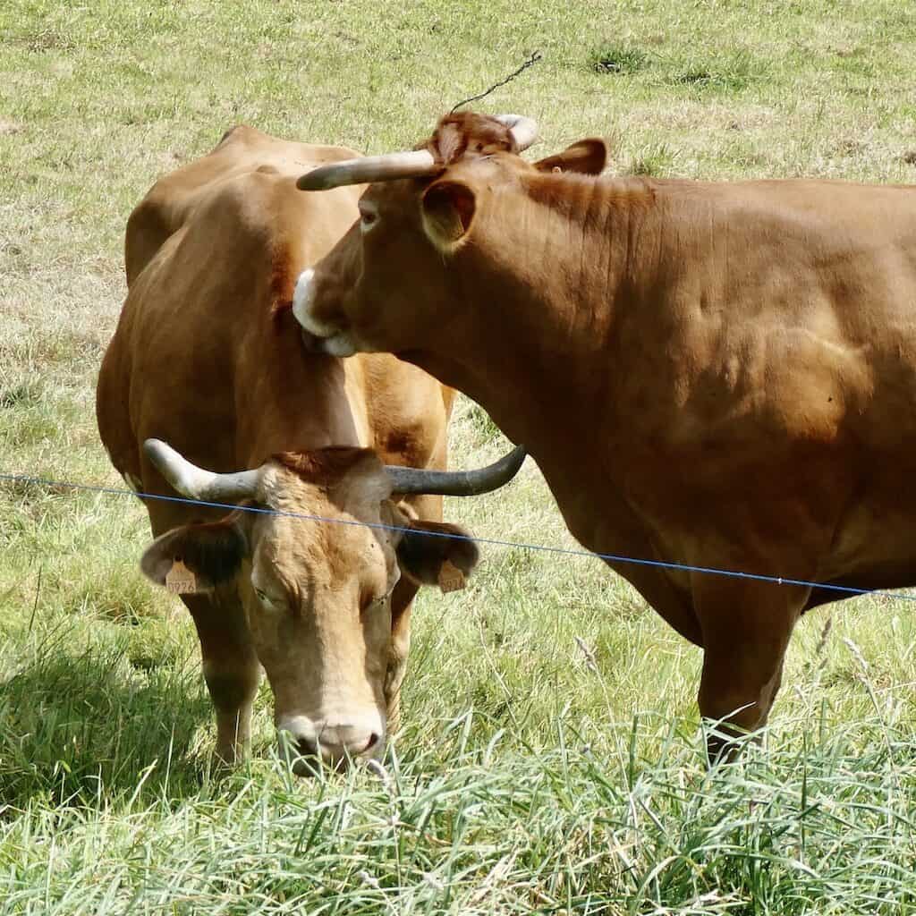 Man beachte, wie genüsslich sich die Kuh den Hals lecken lässt und dabei regelrecht die Augen verdreht.