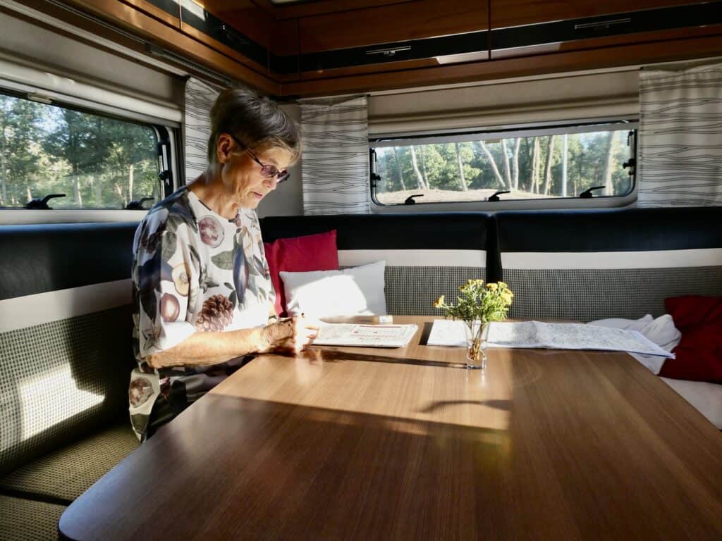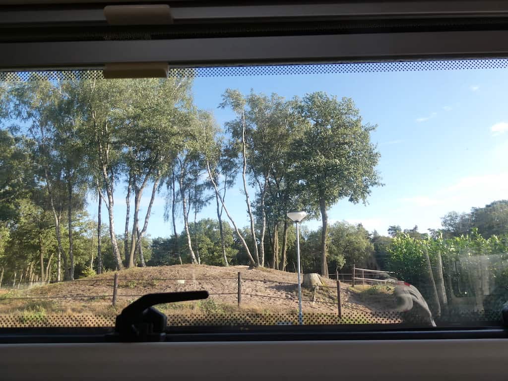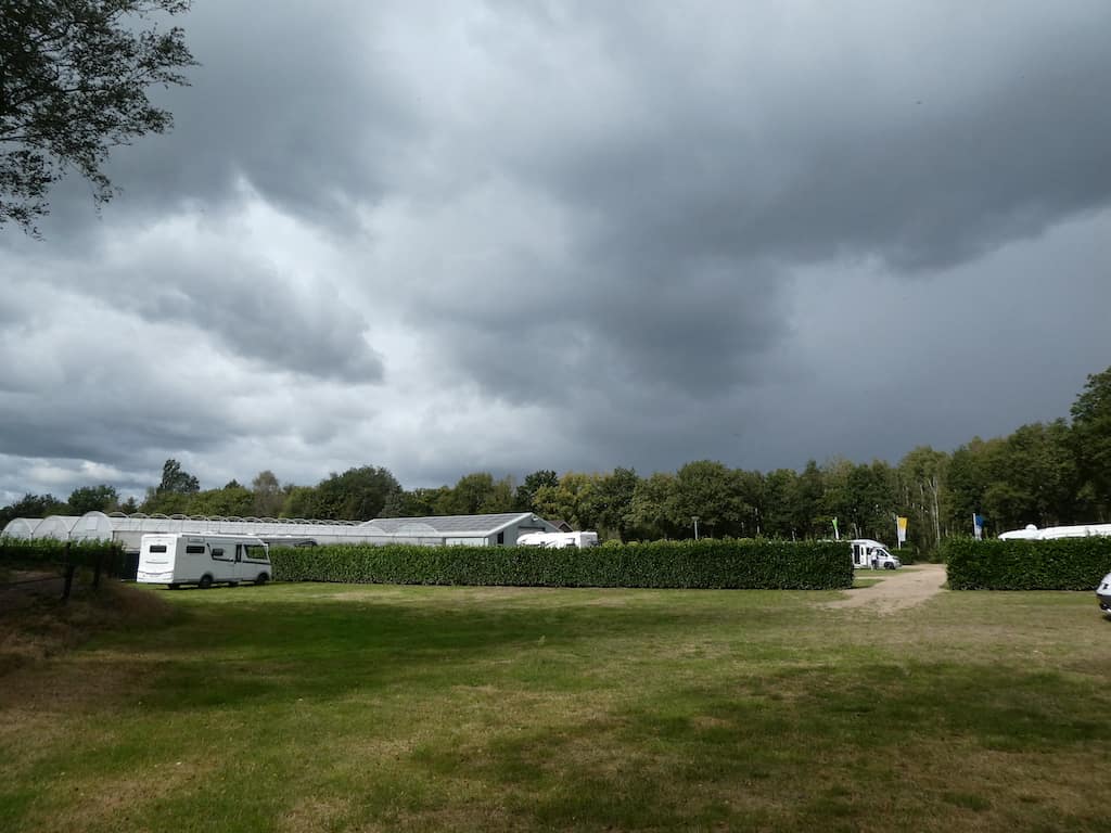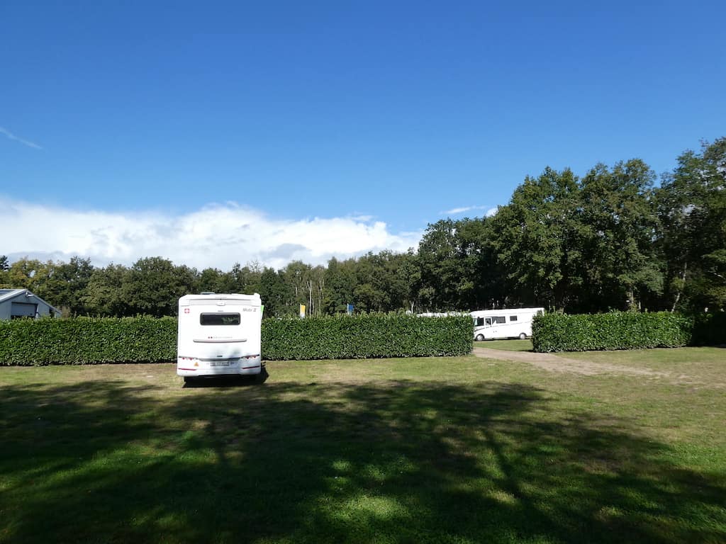 Wir stellen uns heute in den hinteren Bereich, der durch die Hecken etwas windgeschützt liegt. Zwischen diesen Fotos haben wir uns weiter nach links versetzt um Satellitenempfang zu haben. Man weiss ja nie . . .