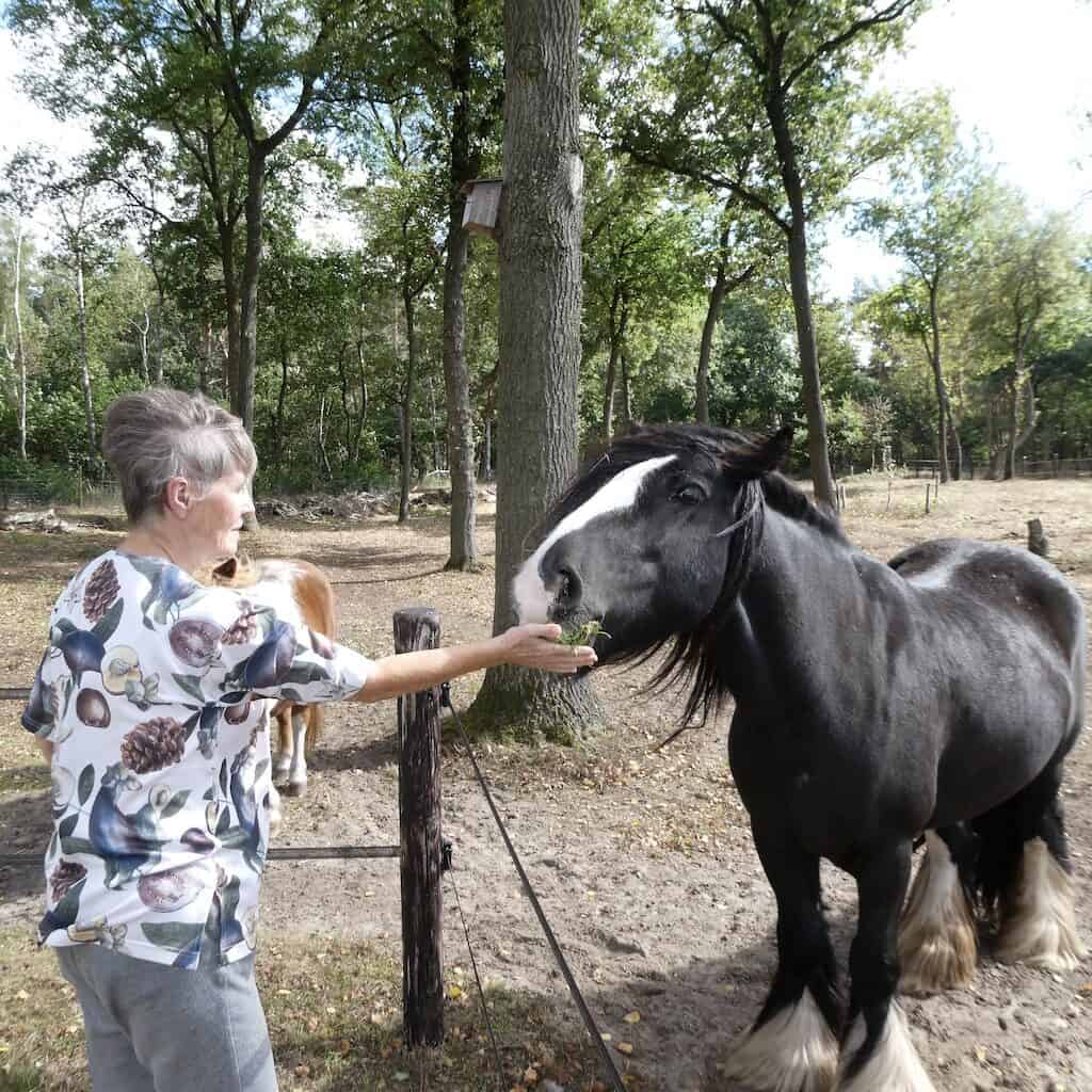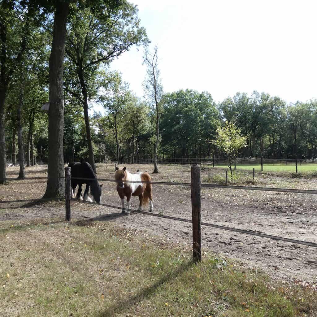 Aus dem Mobi schauen wir auf eine Pferdekoppel. Der Boden ist dort ziemlich abgegrast. So bekommen die beiden etwas Gras von uns. Man beachte, wie beide Mähnen im Wind fliegen.