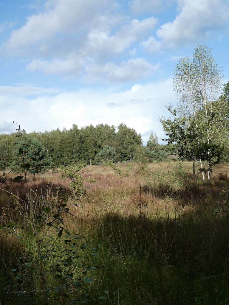 Kurz nach dem Schauer scheint die Sonne schon wieder in das Birkenwäldchen auf der Düne hinter uns.